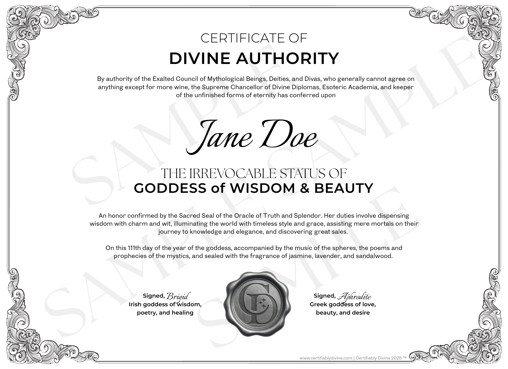 This printable certificate celebrates your power to see and create beauty everywhere - proof that confidence, grace, and laughter are your most radiant accessories.