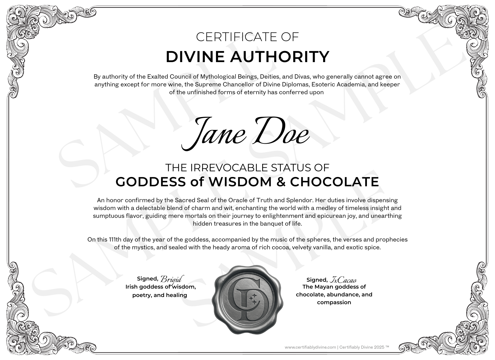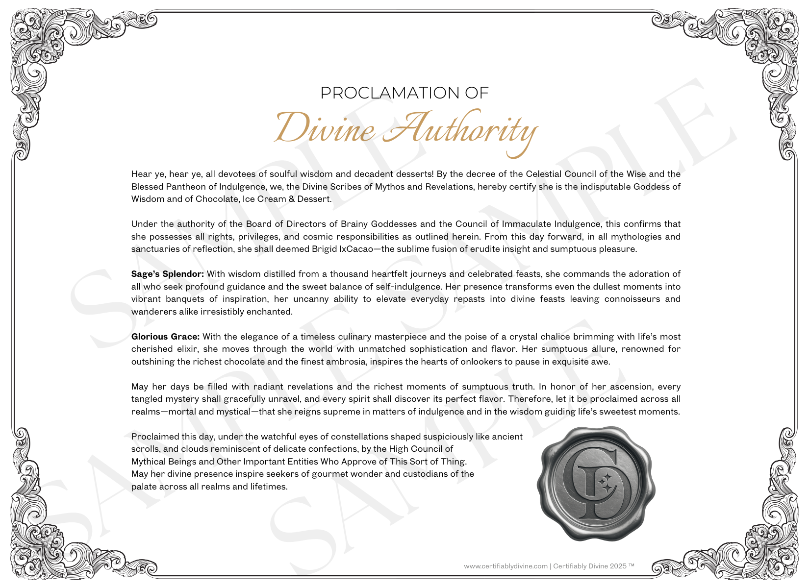Indulge your sweet sovereignty. This printable certificate celebrates your ability to find wisdom (and serotonin) in every bite of chocolate-fueled joy.
