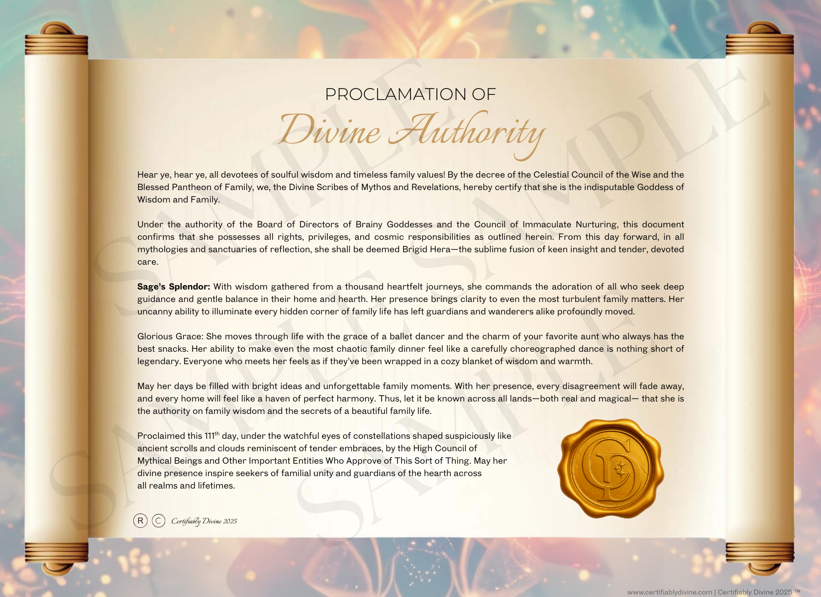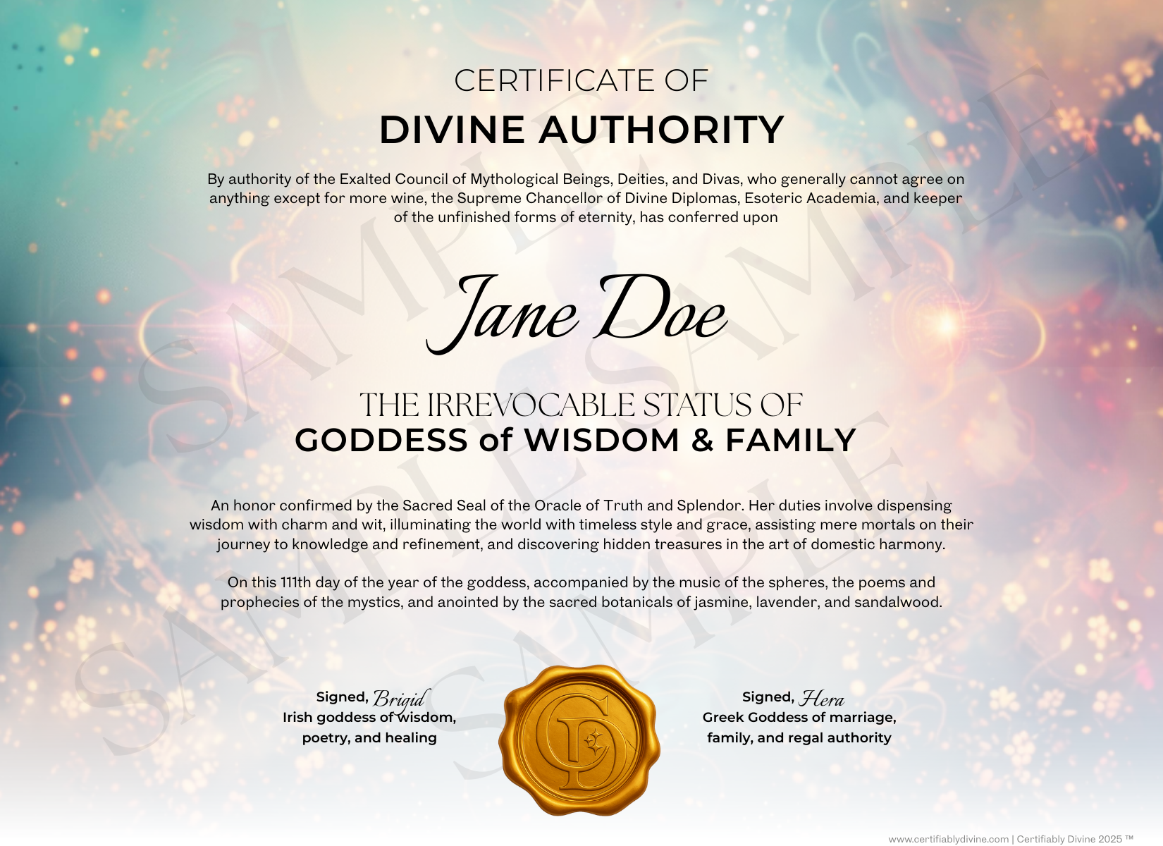 Celebrate your sacred chaos and boundless care. This printable certificate honors your wisdom in nurturing, guiding, and loving your people fiercely—because family is divine work.