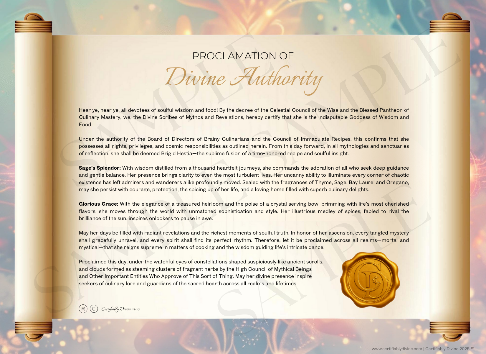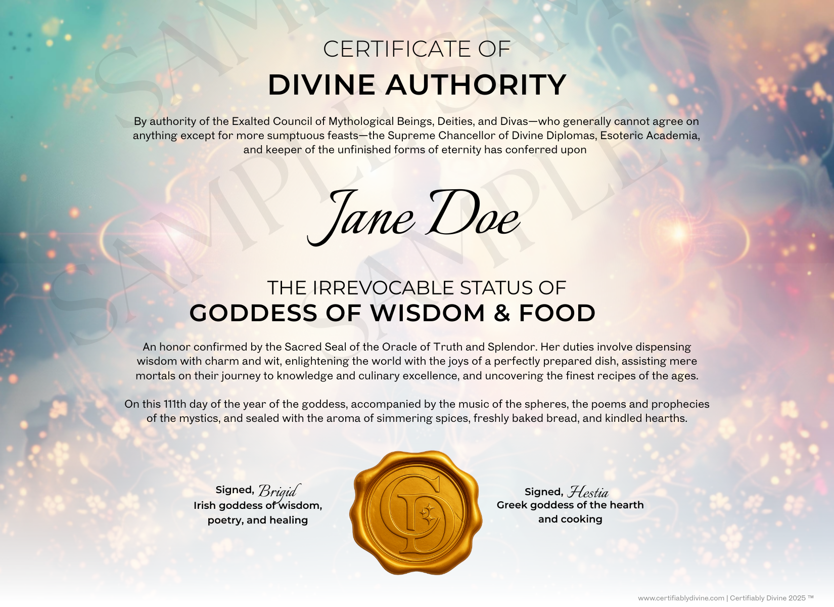 Proclaim your sacred right to feed hearts and bellies alike. This printable certificate honors your divine power in the kitchen, and your gift for turning ingredients into edible joy.