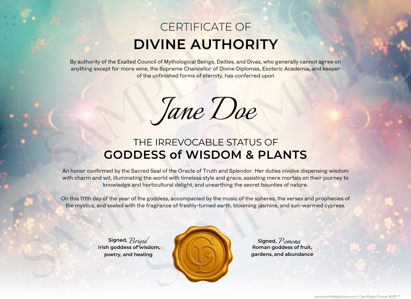 Celebrate your chlorophyll wisdom. This printable certificate honors your sacred connection to all things green and growing—proof that nurturing life is divine work.