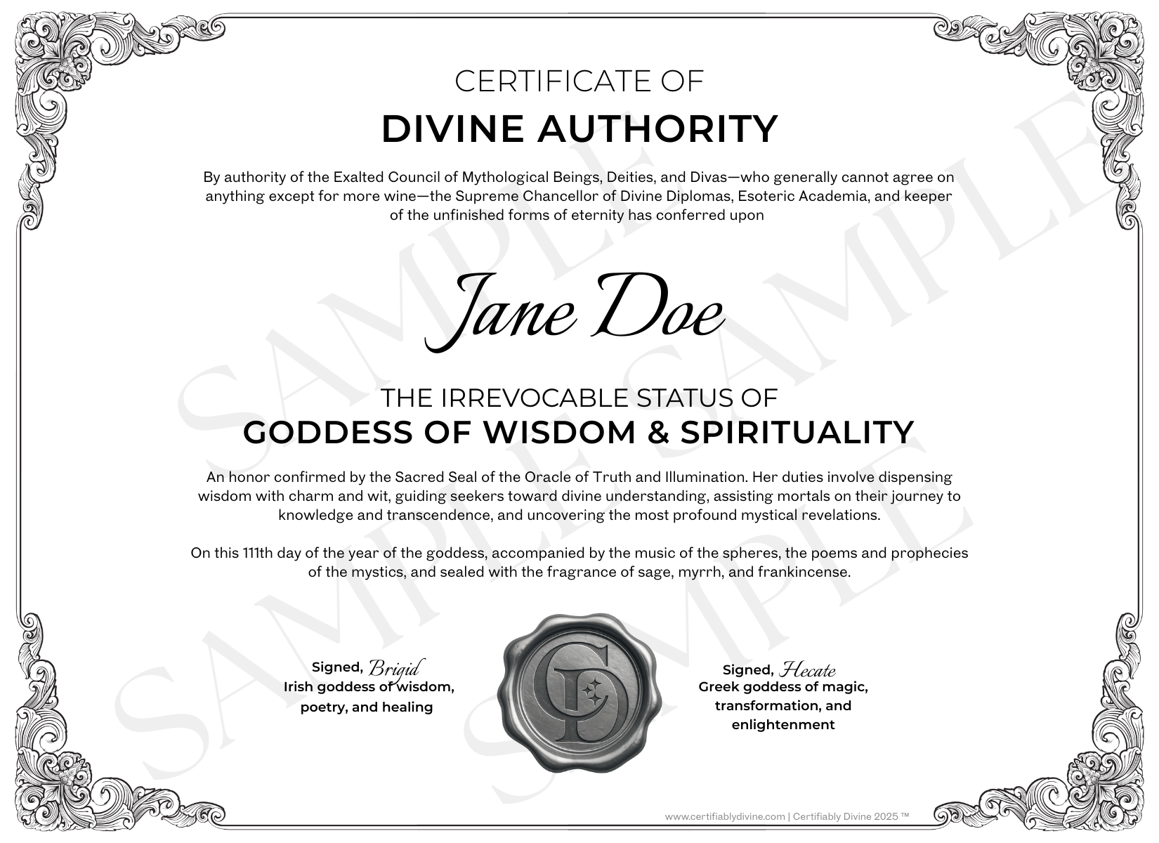 • Digital Certificate of Divine Authority (with an editable name field)