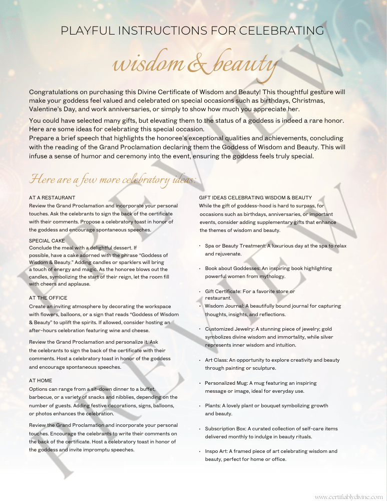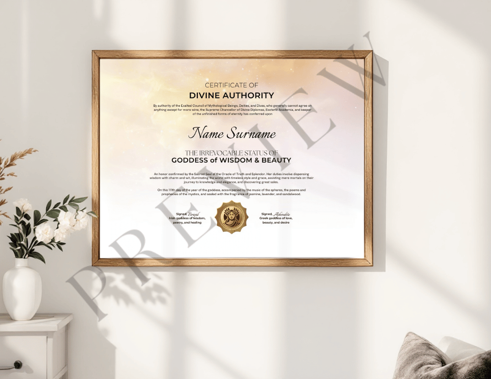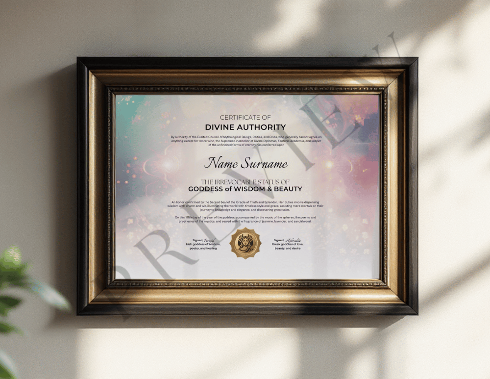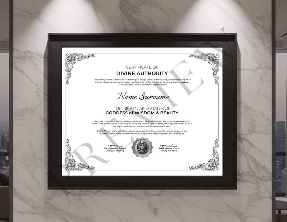 This printable certificate celebrates your power to see and create beauty everywhere—proof that confidence, grace, and laughter are your most radiant accessories.